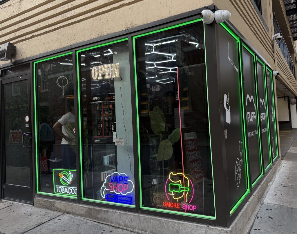 Prime Tobacco Zone, a chain offering something for every kind of smoking vice, has opened up into the long empty spot next to Joe’s Pizza. For a hot moment that space was home to an artisan luxury goods collective called The Narrative after long-time tenant Sun Myst Tanning Spa left.