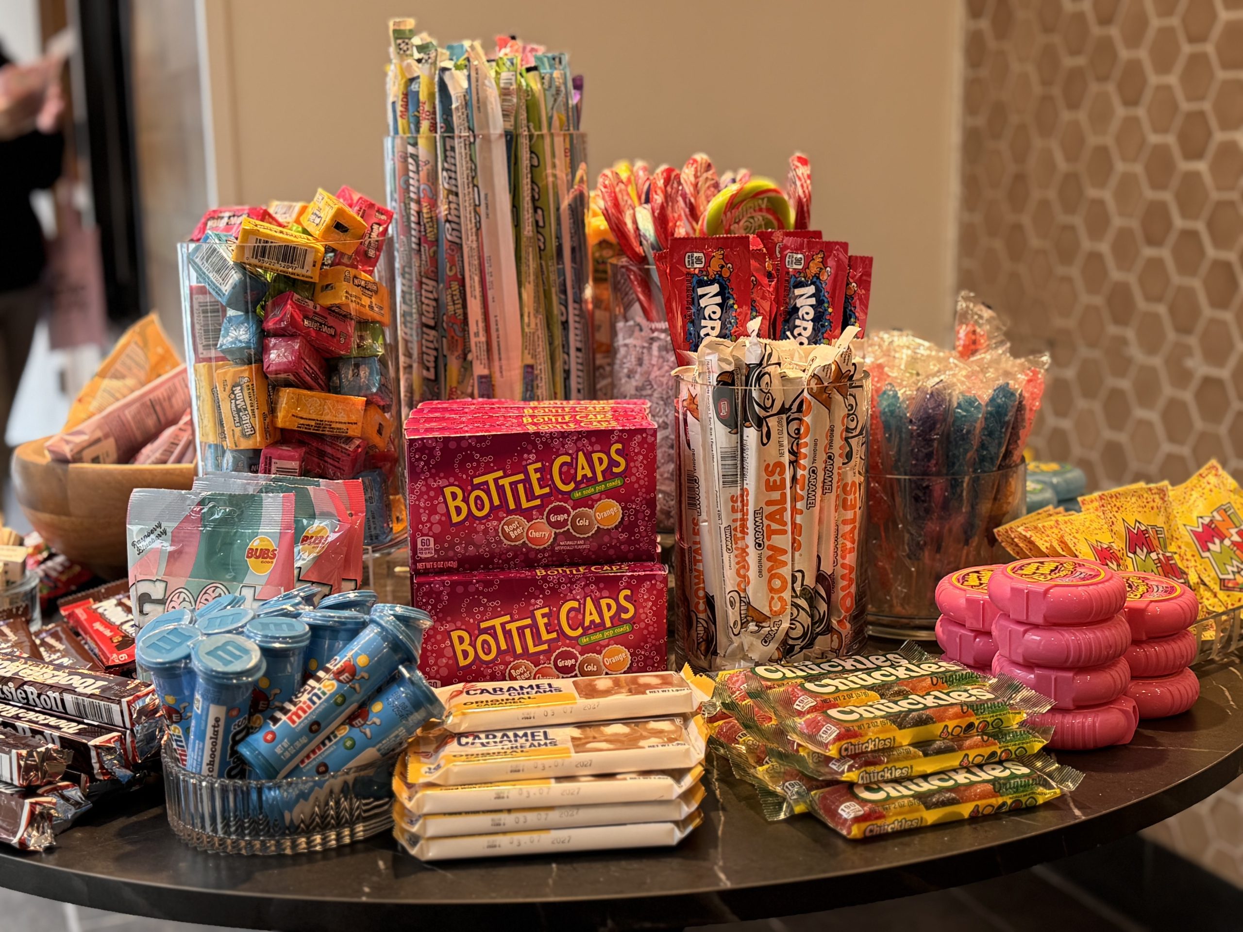 The second stop on this candy caboose has parked itself in the long-vacant Starbucks spot, and the transformation—as the photos show—is something to see. Walk in and you’re hit with floor-to-ceiling shelves packed with everything from nostalgic classics to trendy imports, the kind of selection that requires multiple visits just to process it all. Beyond the expected sugar rush, they’ve stocked ornaments, candles, and even gifts for your four-legged friends (because of COURSE dogs deserve candy-adjacent presents too).