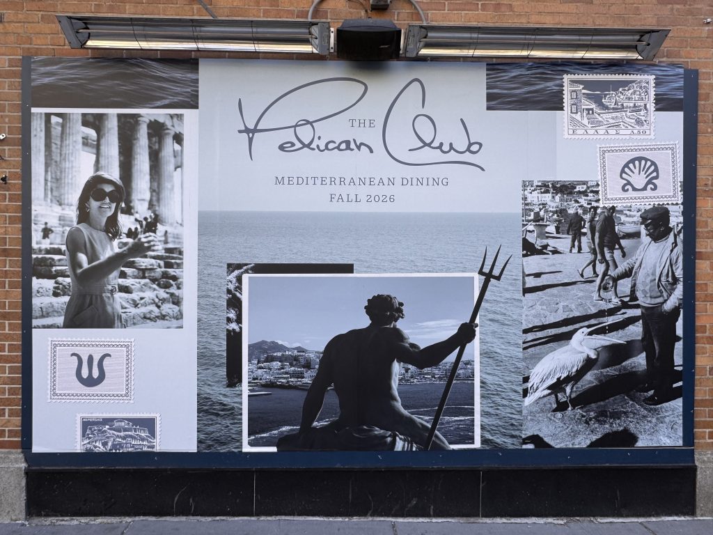 Let’s get the headline out of the way: The Pelican Club is going to be a Greek restaurant.